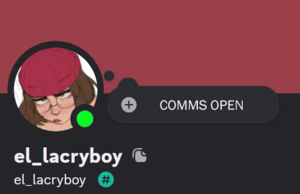 DISCORD @ el_lacryboy I will ignore messages not pertaining to commissions purposes.PayPal Payment Upfront I will only begin once the full payment has successfully transferred. I do not provide payment plans.Slots and reservations You can only secure a slot by providing payment. If payment is not provided in a timely manner, I will ask you if you'd like to be contacted at a later date when I'm available again (if you have lost your temporary slot).Delivery timeframe For Monochrome and Flat color pieces it takes around 2 weeks to a month. For Rendered Illustrations it can take 1-2 Months depending on the complexity.Personal Use only These works cannot be used for commercial purposes, you may make personal merchandise for yourself that you do not intend to sell.DMing me when it says "COMMS CLOSED" I may take a little longer to respond if it says I am closed, but you are free to message me with commission information.When will you open? This is unpredictable but I try to open once a month. Please look at my twitter profile and my discord notification badge to see if I'm open - it will be green when I'm actively taking orders.Image below shows what it generally looks like when I'm available no need to ask if I'm still taking commssions, send info straight away.